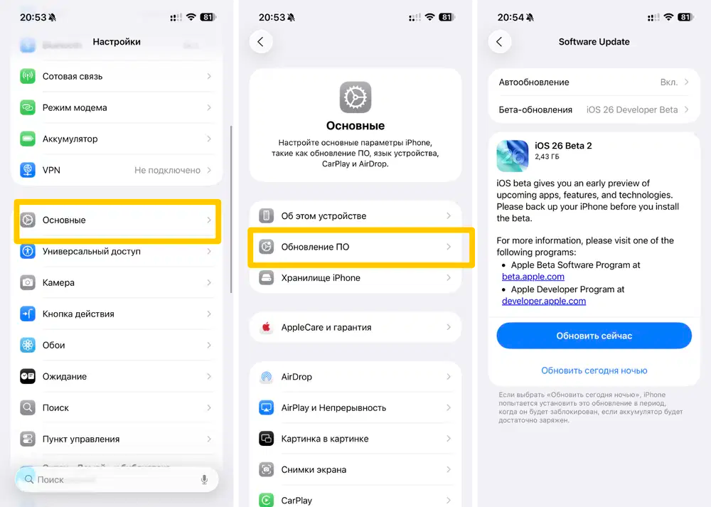 Обновление iPhone 12 и iPhone 13 до iOS 26